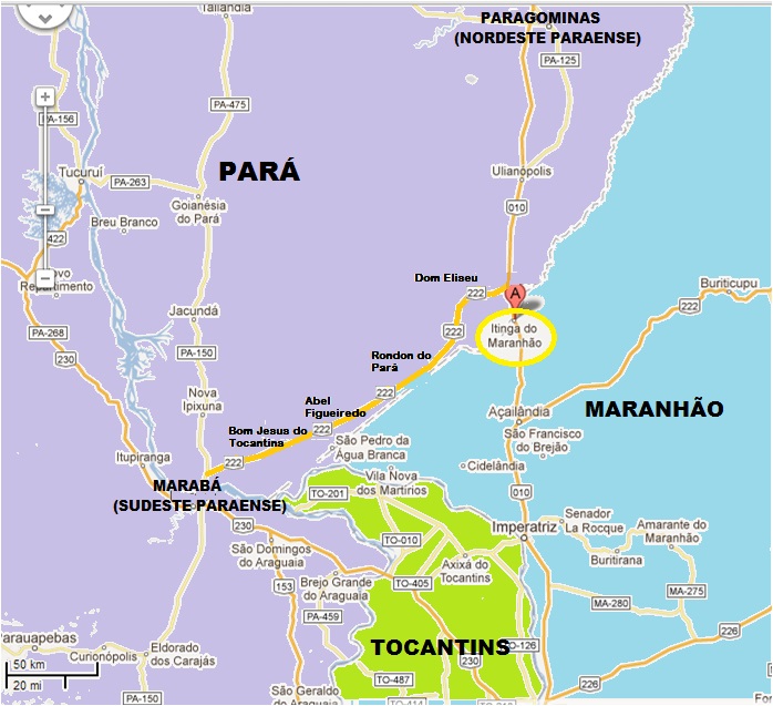 - Mapa 01: Mapa com a localização da BR-222, antiga PA-70