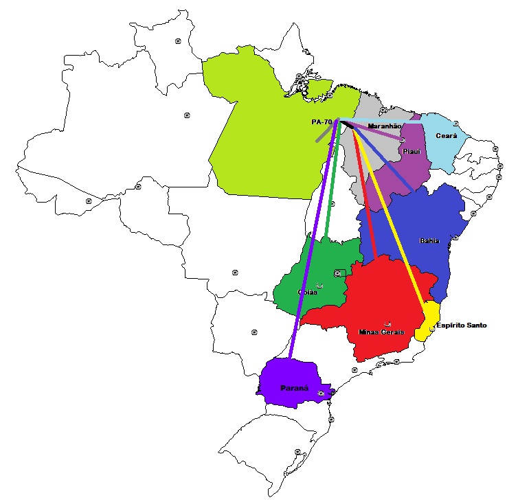 - Mapa 02: Fluxos migratórios para a região da PA-70 entre os anos de 1960-1990